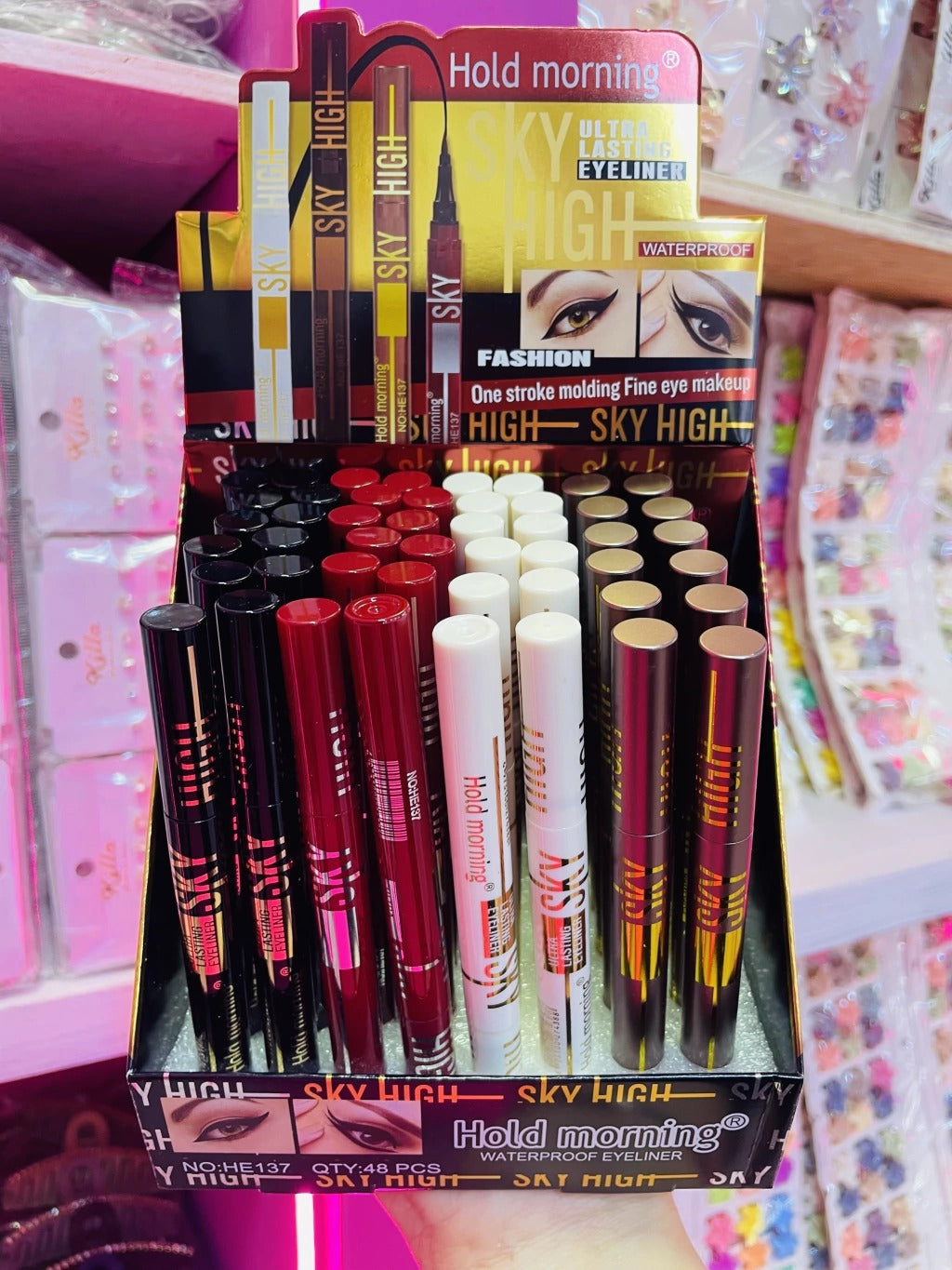 Achieve bold, flawless eyes with the Hold Morning® Sky High Waterproof Eyeliner. This ultra-lasting eyeliner delivers intense color with a single stroke, thanks to its fine-tip applicator that glides smoothly for precise definition. Whether you're going for a subtle look or a dramatic wing, this waterproof formula ensures your eyeliner stays put all day without smudging or fading.