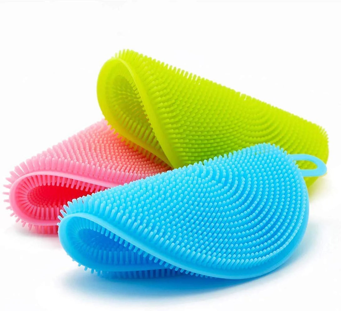 Silicone scourers with thick and soft bristles to replace the sponge or traditional rags.