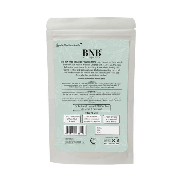 Description: Tea Tree Acne Control Face Mask is a detoxifying mask formulated with tea tree oil to fight acne and prevent future breakouts. It helps to cleanse pores, reduce inflammation, and soothe irritated skin, leaving it refreshed and clear.