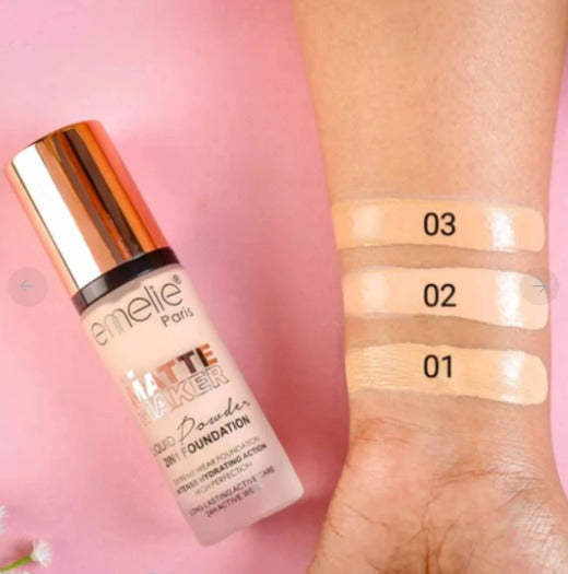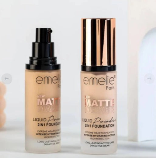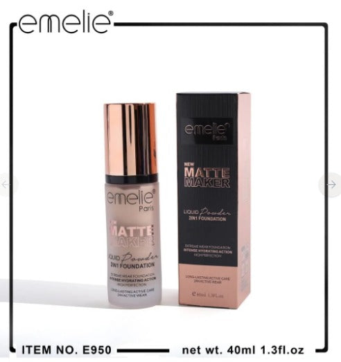 Step into flawless skin with the Emelie New Matte Maker Foundation — your secret to a smooth, shine-free complexion! 🌟 This lightweight, high-coverage formula glides effortlessly onto the skin, delivering a velvety matte finish that lasts from morning to night. Whether you're battling humidity or just want a polished look for your day, this foundation keeps you looking fresh and radiant. 💁♀️ Ideal for oily and combination skin, it’s the perfect base for any makeup routine.