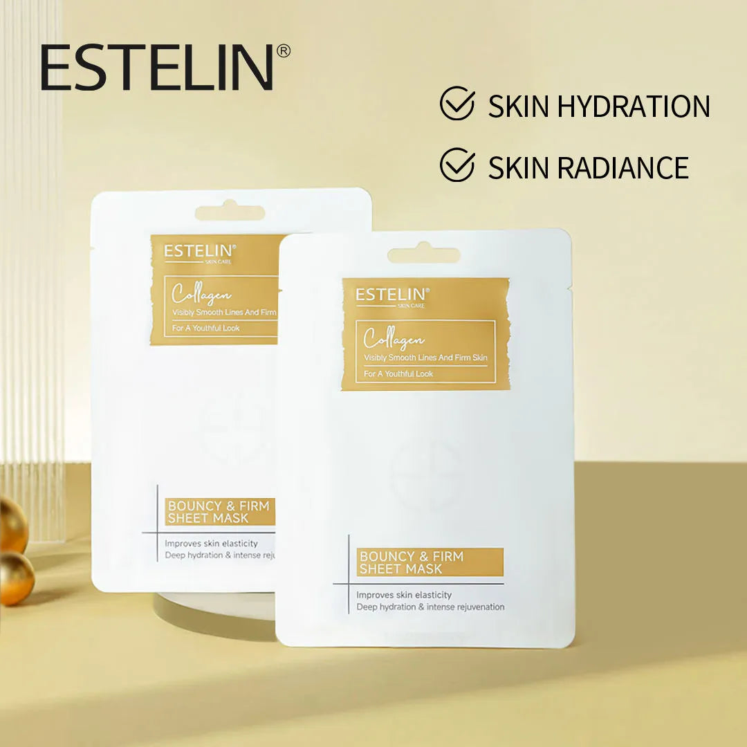 Pamper your skin with the ESTELIN Bouncy & Firm Collagen Sheet Mask, designed to instantly plump, hydrate, and firm your complexion. Infused with high-performance collagen, hyaluronic acid, and nourishing botanical extracts, this mask boosts skin elasticity, reduces fine lines, and restores a youthful bounce.