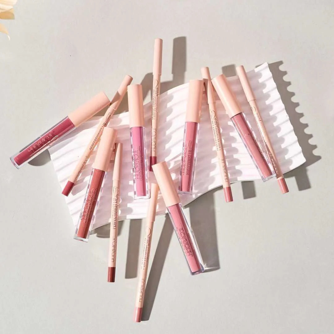 Hudamoji Ultra Matte Finish Lip Gloss And Lip Liner Lip Contour Set