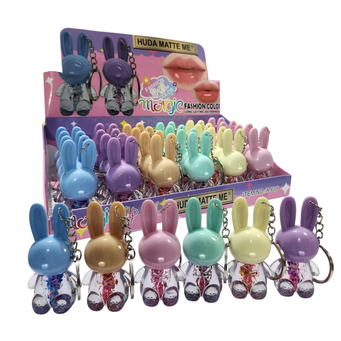HUDA Matte Me Magic Color Changing Bunny Lip Gloss Keychain Set β Cute, Colorful & Long-Lasting