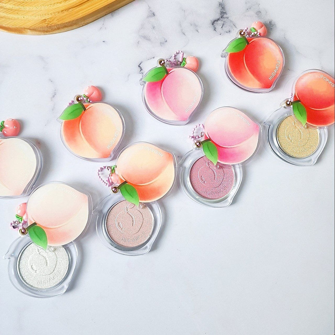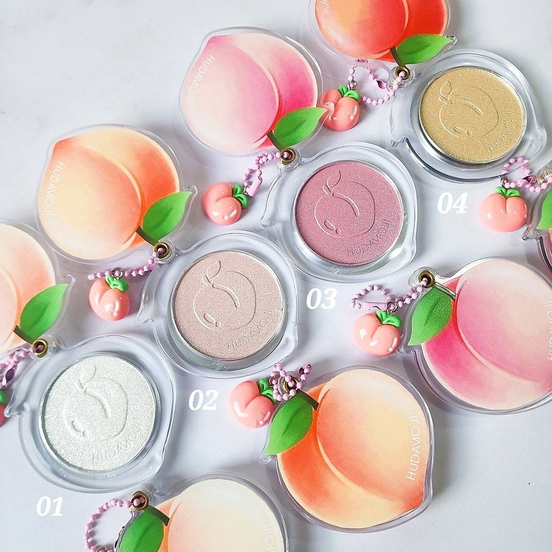 Design: The makeup compacts are shaped like stylized peaches with attached pink ball chains and adorable 3D peach charms, embodying a fresh and sweet "fruit/peach aesthetic."