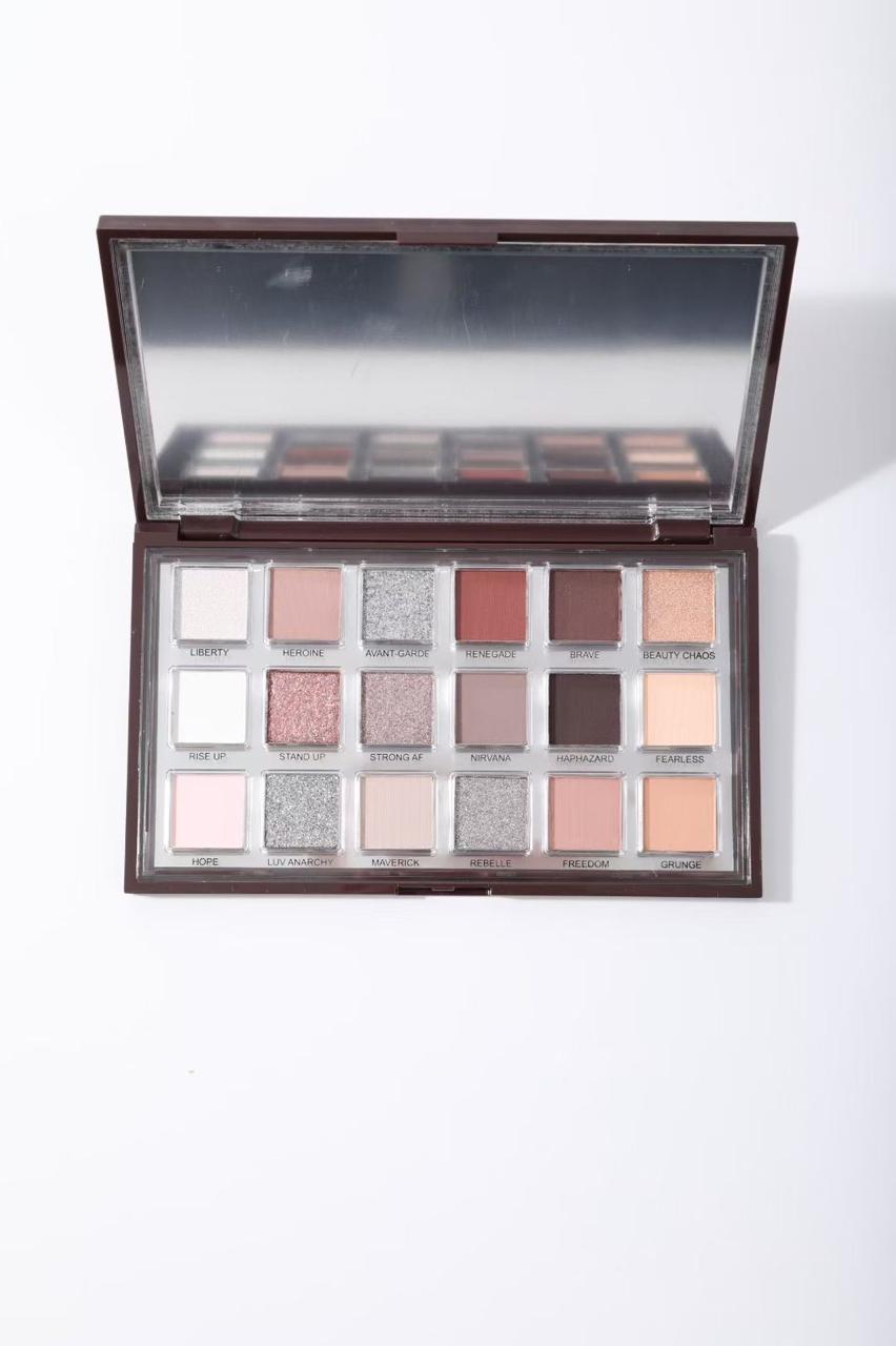 Design:Ā The interior features aĀ full-sized mirrorĀ for easy application on the go. The shades are clearly laid out in a grid, and individual shade names (such as "LIBERTY," "HEROINE," "VIBRANT," and "SINCERITY") are visible underneath the pans.