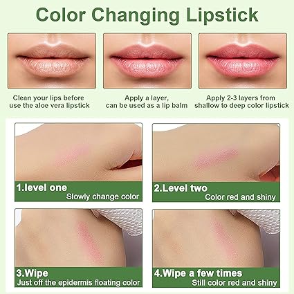 - Color change: the green lipstick can according to the temperature and humidity of the lips, adjust the depth of the lip color