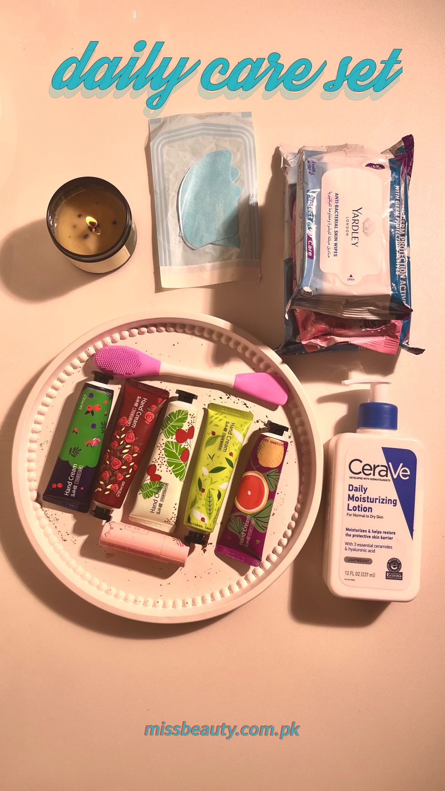 Pamper your skin every day with the Miss Beauty Daily Care Set, a thoughtfully curated collection designed to keep your skin soft, fresh, and radiant. This all-in-one kit includes daily must-haves such as hand creams, moisturizing lotion, antibacterial wipes, and self-care accessories — perfect for maintaining a clean and nourished glow throughout the day.