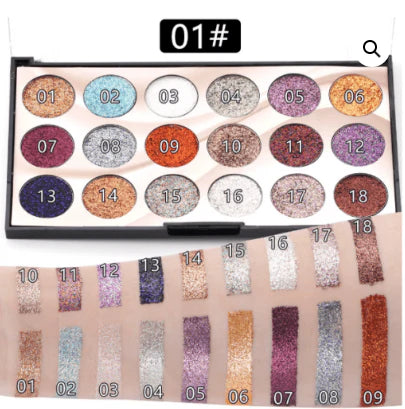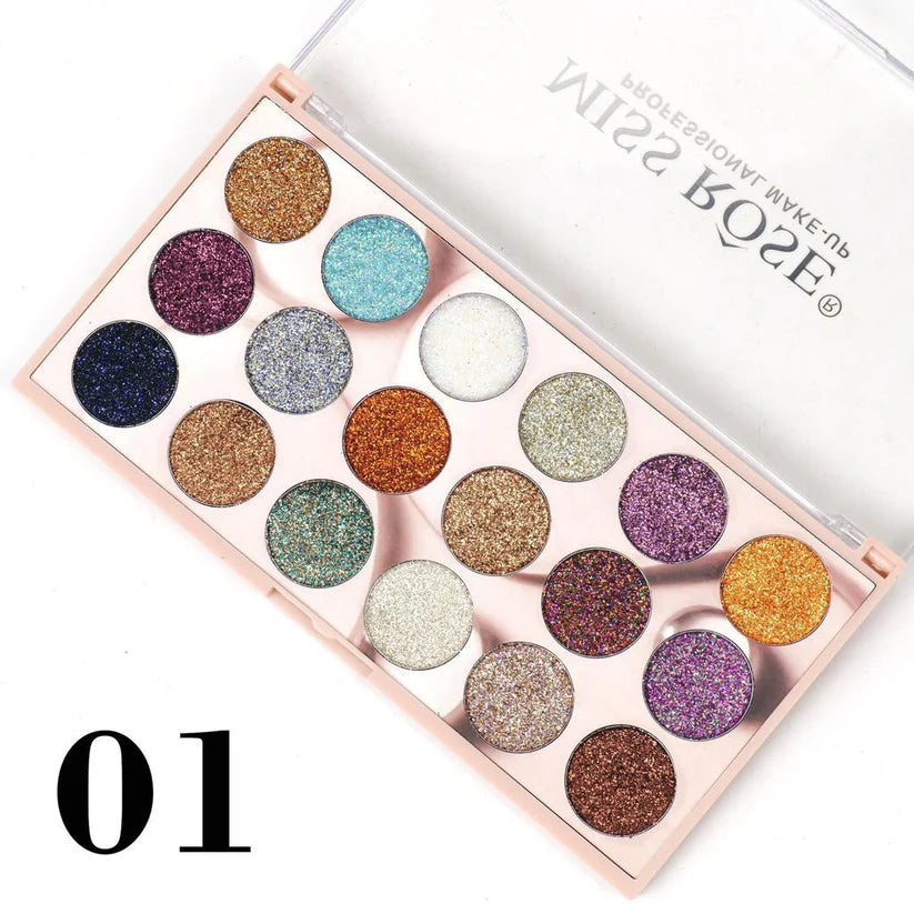 - Each color is unique, beautiful, super shiny and pigmented. Easy to use and goes on nicely. MISS ROSE 18-Color Sequin Glitter Eyeshadow Palette is your secret weapon to create the perfect eye make up.