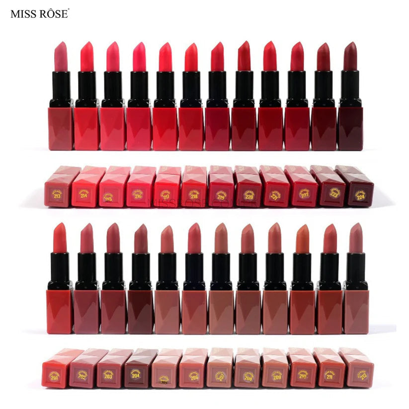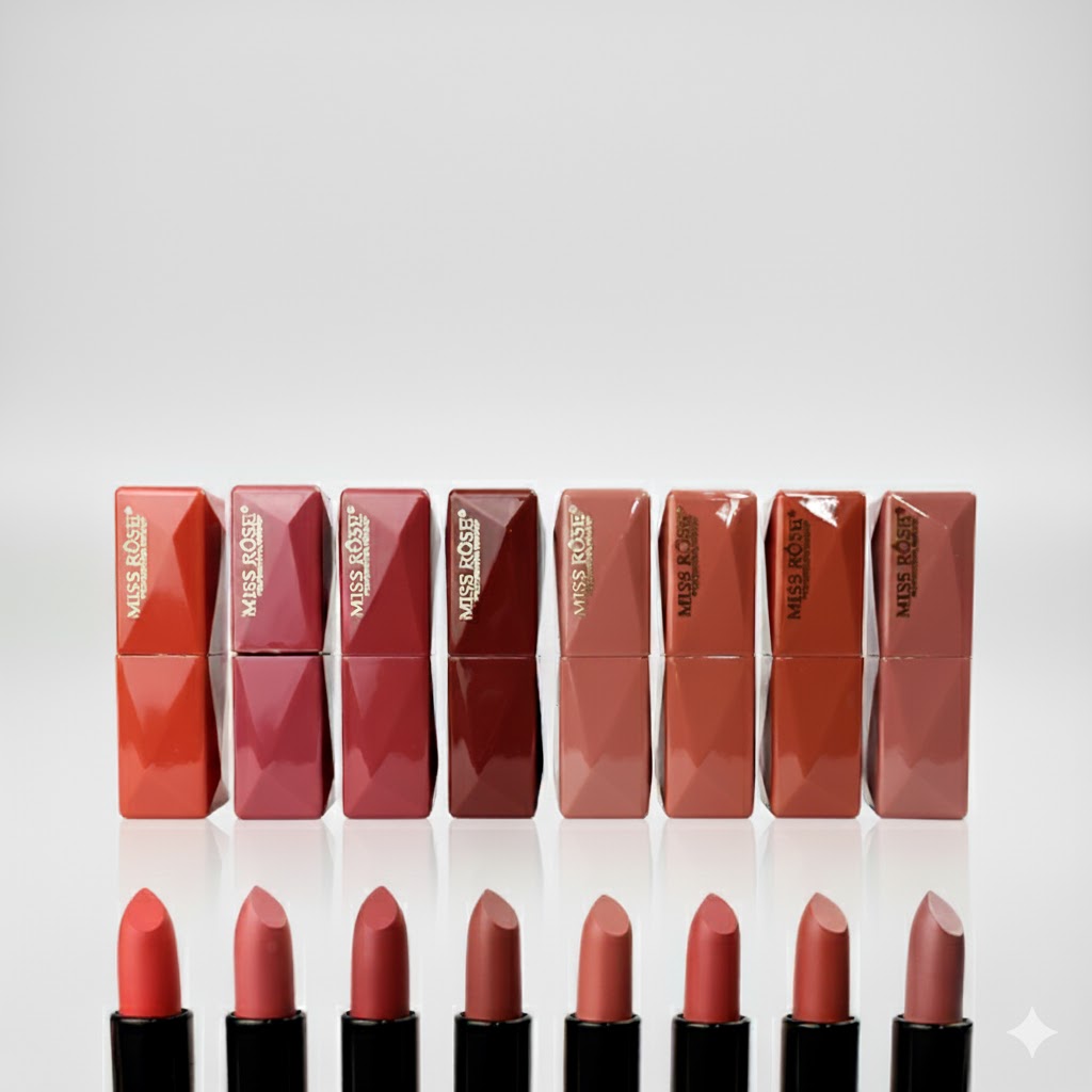 Indulge in the ultimate lip luxury with Miss Rose Creamy Matte Lipstick, available in 24 vibrant shades. Each lipstick delivers a creamy texture that glides on effortlessly, providing a matte finish that lasts all day. Whether you wear it alone for a classic look or layer shades for a custom blend, these highly pigmented lip creams offer endless possibilities.