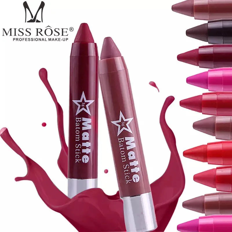 Presenting a full-coverage, creamy lip crayon. The composition of MISS ROSE Matte Lip Batom Crayon is remarkably pleasant and lightweight for daily use. This lip crayon applies smoothly and has a rich colour payoff that settles to a matte yet pleasant finish.