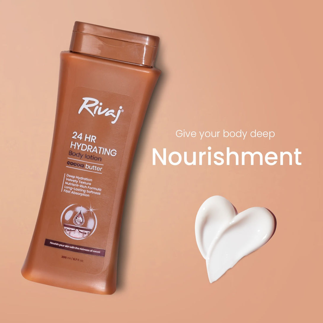 Whether youre seeking relief from winter dryness or looking to maintain your skins natural glow all year round, our Cocoa Butter Lotion is your go-to solution. Its time to indulge in the ultimate self-care experience and embrace the velvety softness your skin deserves. This creamy body butter blend gives skin a mega-moisture boost.