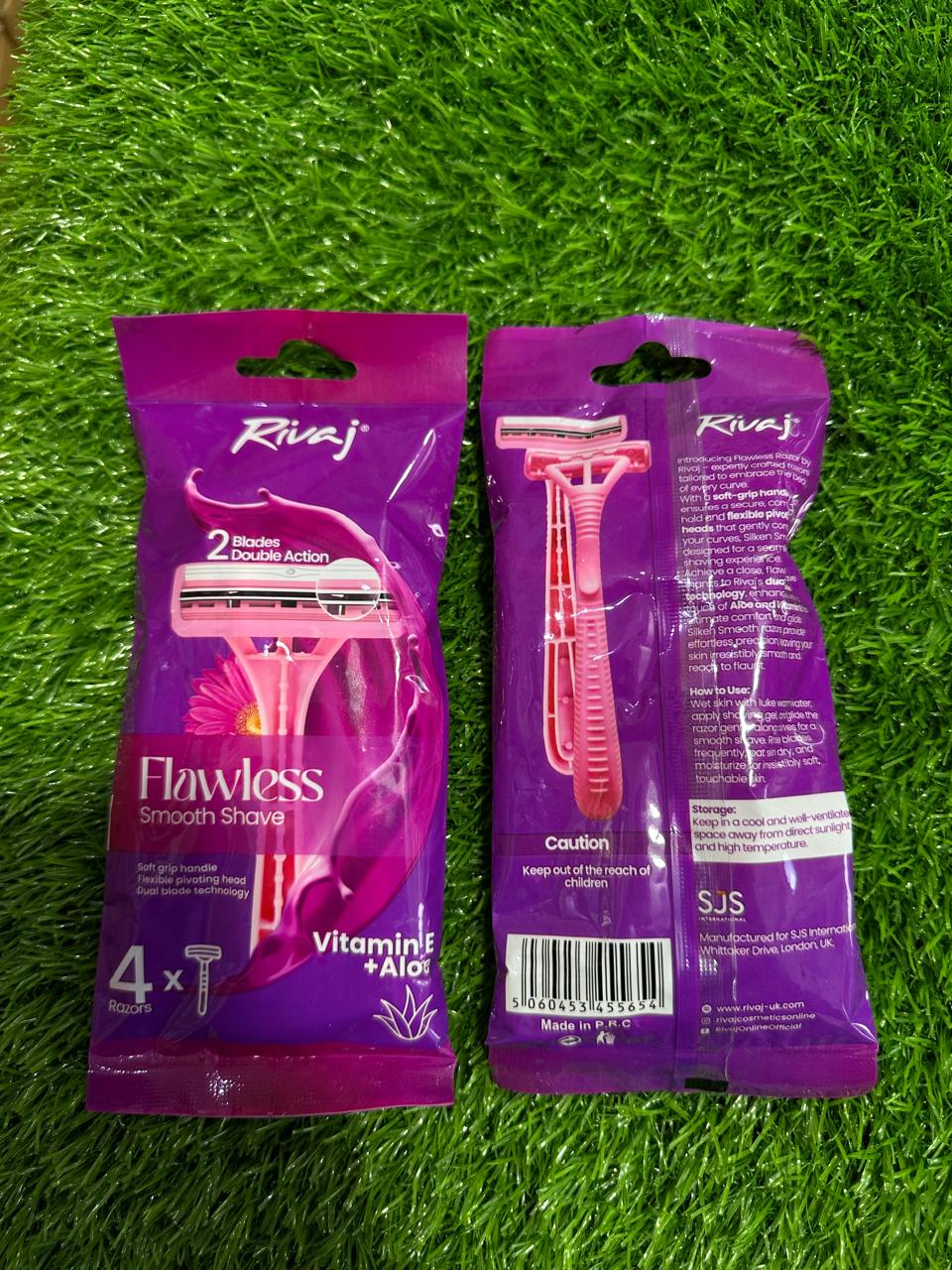 Rivaj Flawless Smooth Shave Razor has 2 built-in blades for a smooth, close shave without uncomfortable pulling or irritation. Rivaj Flawless Smooth Shave Razor is specifically designed to protect skin from shave irritation. They contain a proprietary irritant defense bar and optimally placed blades that allow them to cut hair with only a few millimeters of skin contact. The razor refills have a precise Trimmer on the back of the blades to help with tricky areas.