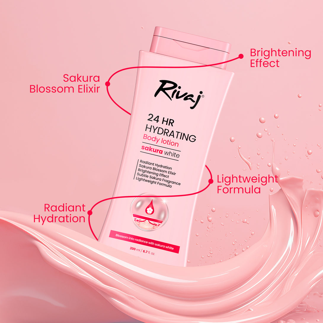Smooth the Sakura White Body Lotion all over your body, focusing on dry areas. For best results, apply after bathing or whenever your skin needs a touch of luxury.