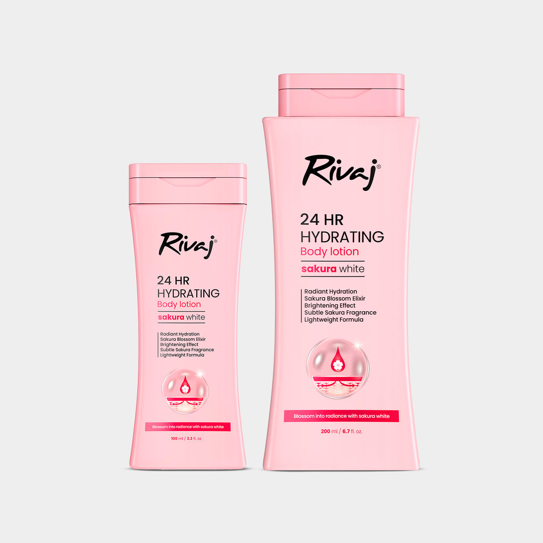 Crafted with care, our Sakura White Body Lotion is formulated with a blend of skin-loving ingredients to ensure optimal hydration and revitalization. This lightweight yet deeply moisturizing lotion effortlessly absorbs into your skin, leaving it velvety soft and smooth to the touch. Bid farewell to dryness and embrace a complexion that is supple, radiant, and glowing with youthful vitality.