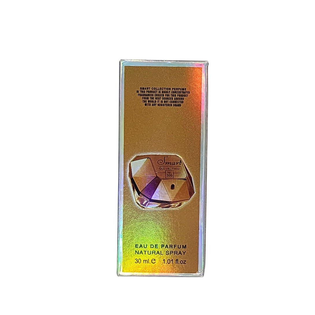 Introducing SMART COLLECTION NO.306 (W) EDP 30ML, an exquisite fragrance that embodies elegance and sophistication. This fragrance is designed for the modern, confident woman who knows what she wants and isn't afraid to go after it. The scent opens with a burst of fresh, citrusy notes that instantly uplift your mood and leave a lasting impression. As the fragrance develops, delicate floral accords emerge, adding a touch of femininity and grace. Finally, the base notes of warm, woody undertones create a sense of depth and sensuality. This Eau de Parfum is perfect for any occasion, whether it's a formal event or a casual day out. Its long-lasting formula ensures that you stay smelling amazing all day long, without the need for frequent reapplication. The sleek and stylish packaging of this perfume reflects the elegance of the fragrance itself. It comes in a compact 30ml bottle that is perfect for carrying in your purse or travel bag, allowing you to enjoy this captivating scent wherever you go. Indulge yourself or surprise a loved one with this captivating fragrance. SMART COLLECTION NO.306 (W) EDP 30ML is a must-have addition to any perfume collection, and its timeless appeal will never go out of style.
