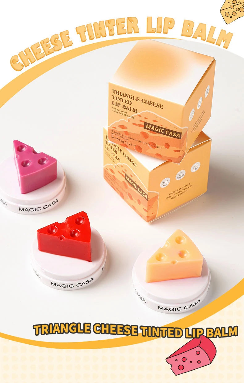 Triangle Cheese Tinted Lip Balm Temperature Change Color Moisturizing Balm Waterproof Long Lasting Matte Cute Lipstick